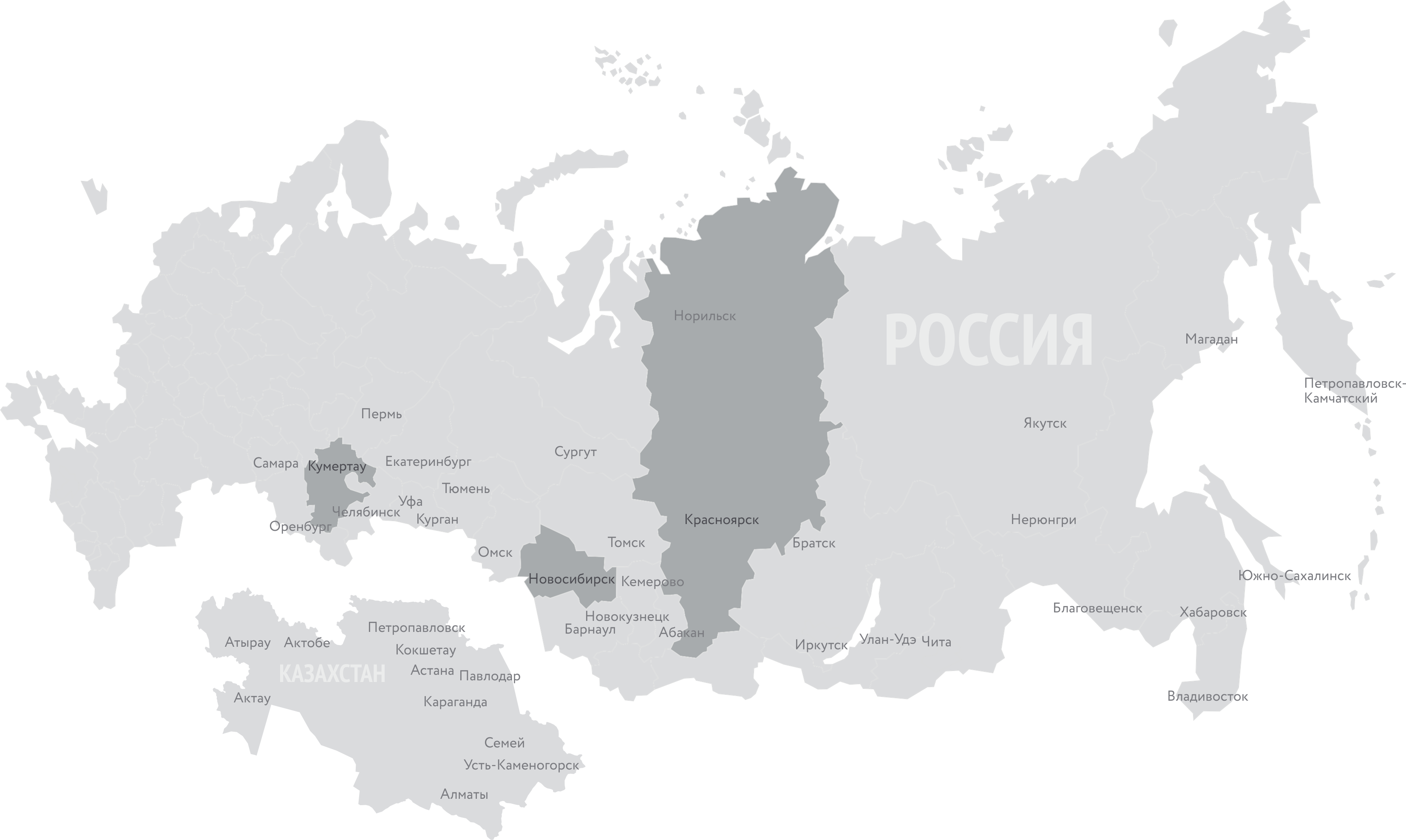 Сибирского, Дальневосточного и Уральского федеральных округов, а также в Казахстане.