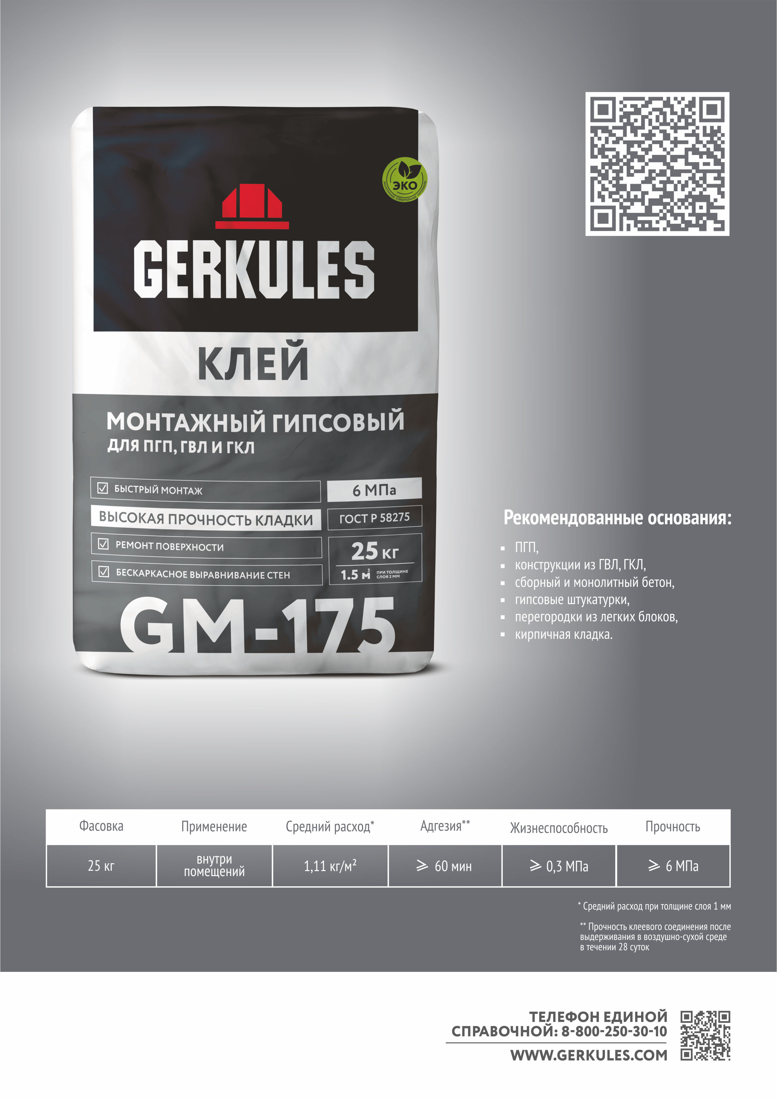 При проведении подготовительных работ рекомендуется руководствоваться СП 70.13330.2012. Поверхность должна быть прочной, ровной, сухой, очищенной от грязи, пыли, масел и жиров, а также любых веществ, ослабляющих адгезию клея к поверхности. Для лучшего сцепления клея поверхность предварительно обработать грунтовками GERKULES согласно инструкции. После нанесения дать грунтовке высохнуть.