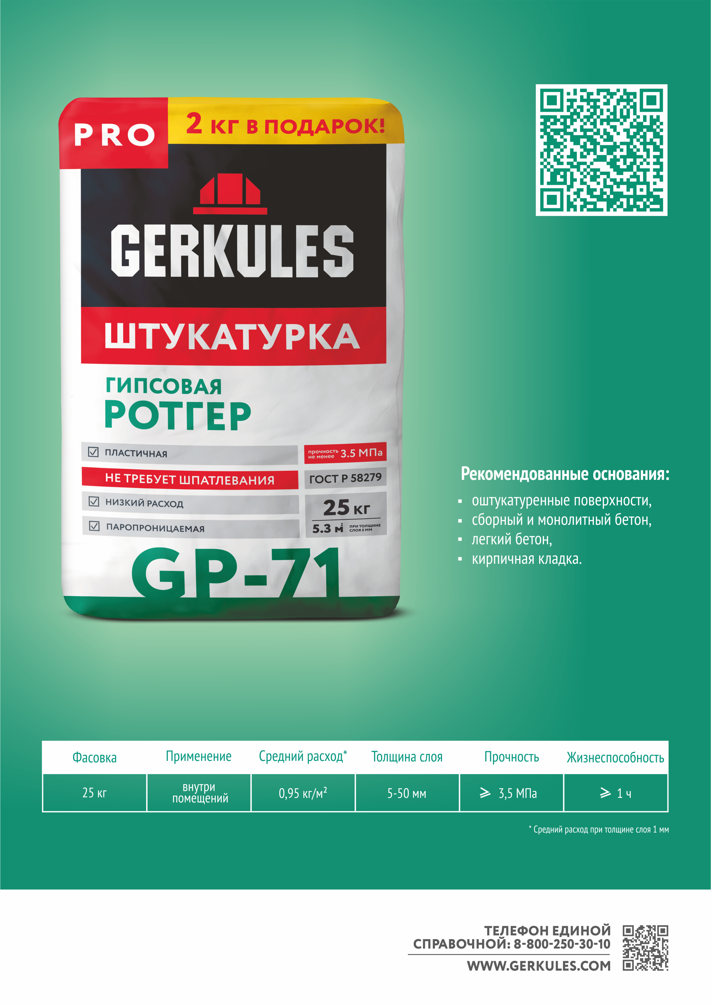 Основание должно соответствовать требованиям СП 71.13330.2017. Оштукатуриваемая поверхность должна быть сухой, не промёрзшей, свободной от пыли и грязи, жировых или масляных пятен, остатков старой краски и других разделительных веществ. Рыхлые и осыпающиеся поверхности должны быть механически расчищены. Пористые и сильно впитывающие поверхности рекомендуется обработать грунтовкой GERKULES GE-29, GE-109 или GE-129 согласно инструкции.